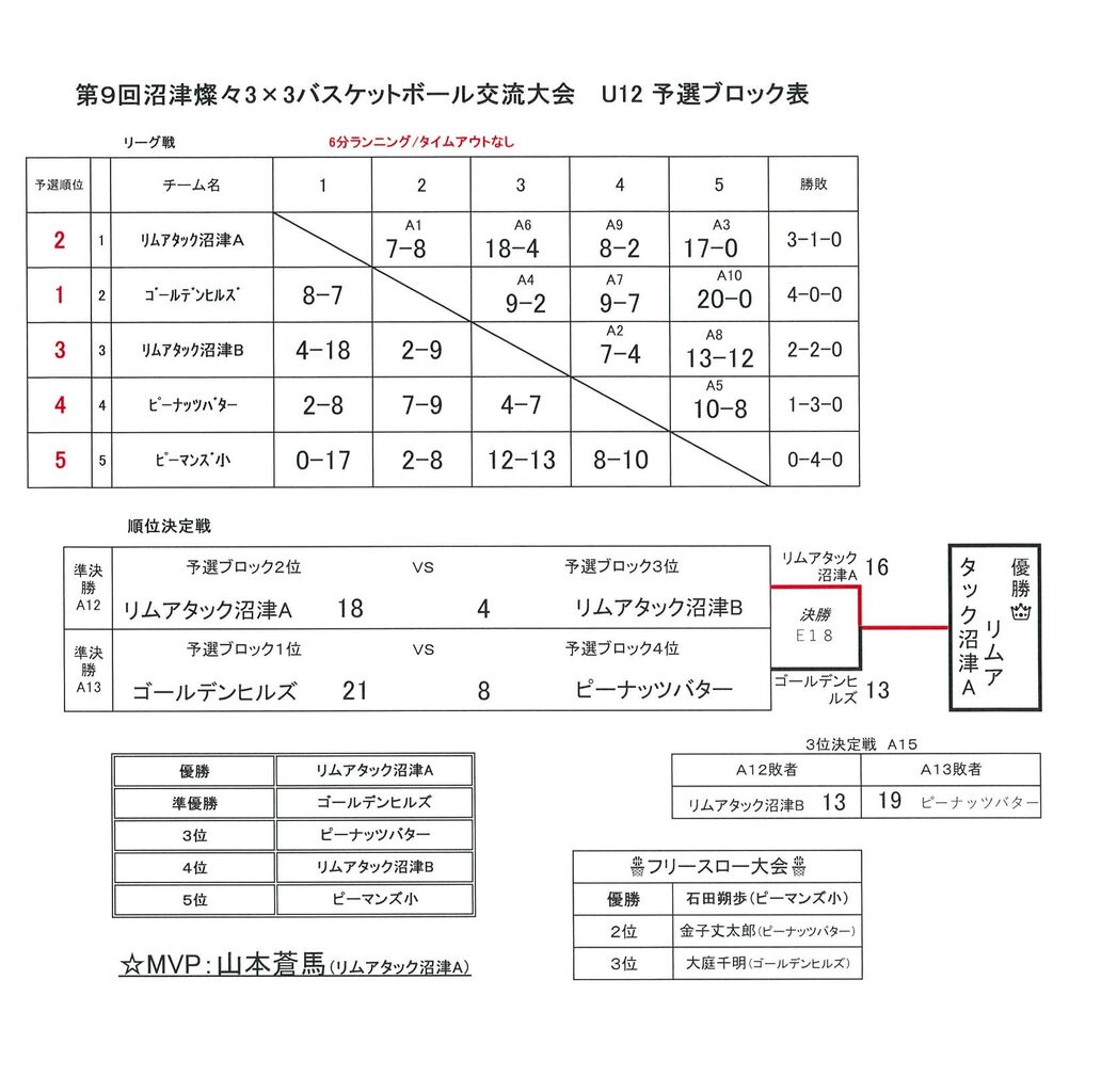 2025年03月11日 沼津燦々3×3バスケットボール交流会 令和7年2月16日(日)香陵アリーナ(沼津市総合体育館)にて「第9回沼津燦々3×3バスケットボール交流大会」が開催されました。ご参加ありがとうございました。 「協会主催・主管 大会イベント」カテゴリの最新記事 < 前の記事次の記事 >